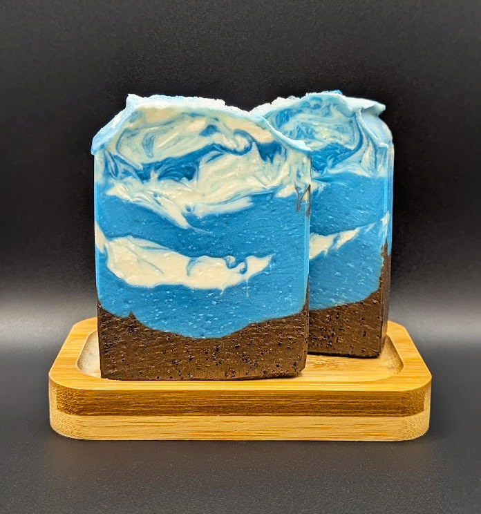 A sudden change in genre, this scent combines citrus, sea salt, and a little spice to create a fresh and vibrant experience. Made with actual sea salt, poppyseeds, and coconut shell: this bar is delightfully but gently exfoliating and will leave you feeling finally clean.